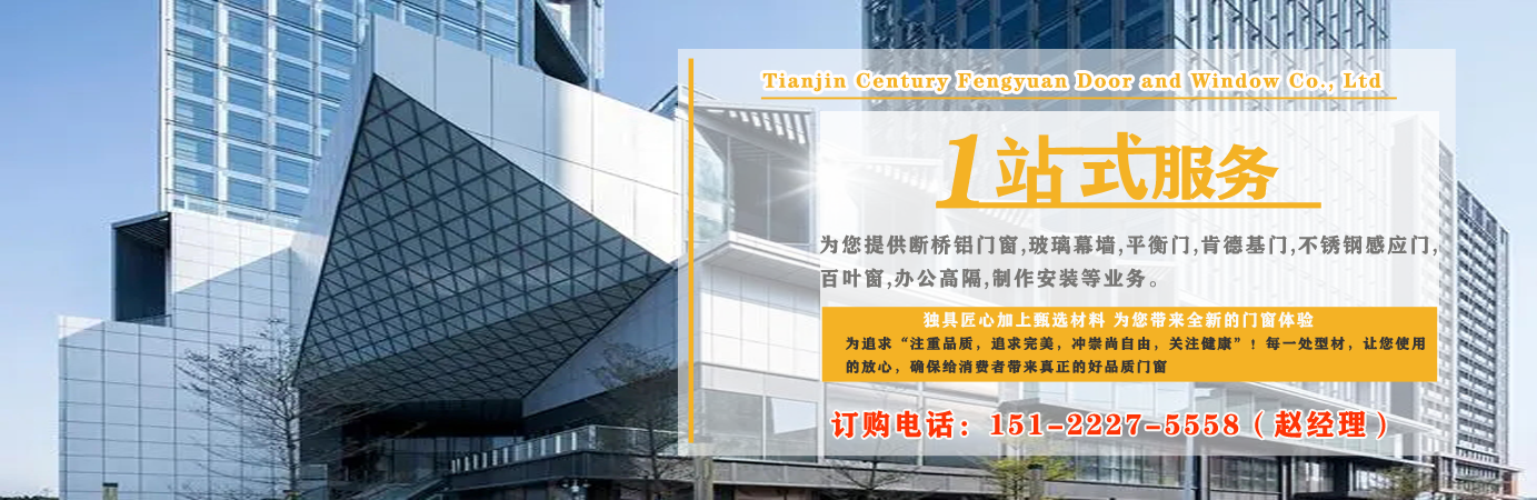 天津世紀(jì)豐源門窗有限公司從事斷橋鋁門窗,玻璃幕墻,平衡門,肯德基門,不銹鋼感應(yīng)門,百葉窗,辦公高隔,制作安裝一站式訂制生產(chǎn)及配套服務(wù)等。 公司自成立以來,始終堅持以人才為本、誠信立業(yè)的經(jīng)營原則,薈萃業(yè)界精英,成熟的技術(shù)、管理方法及企業(yè)經(jīng)驗與國內(nèi)企業(yè)的具體實際相結(jié)合,為企業(yè)供給各個方面的解決方案,使企業(yè)在激烈的市場競爭中始終堅持競爭力,實現(xiàn)企業(yè)快速、穩(wěn)定地發(fā)展。 質(zhì)量好、服務(wù)好、才能信譽好,公司已在諸多領(lǐng)域取得輝煌成績,愿意成為您可信賴的長期合作伙伴。 讓我們攜手同行,共同實現(xiàn)“讓普通老百姓都用得上高端門窗”...